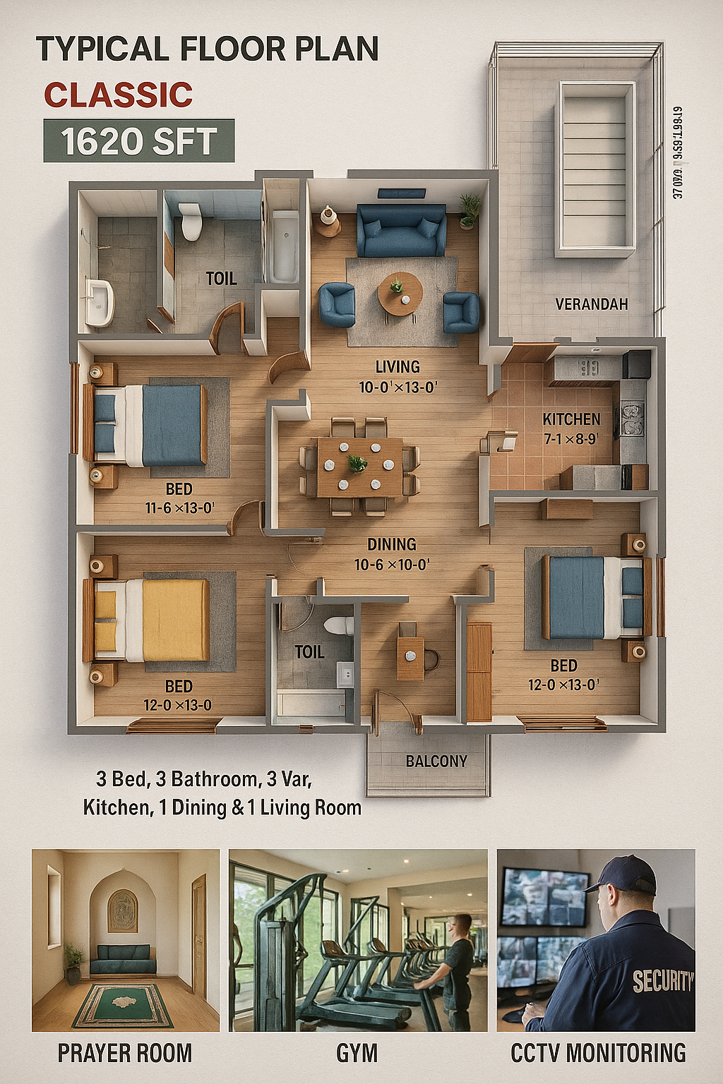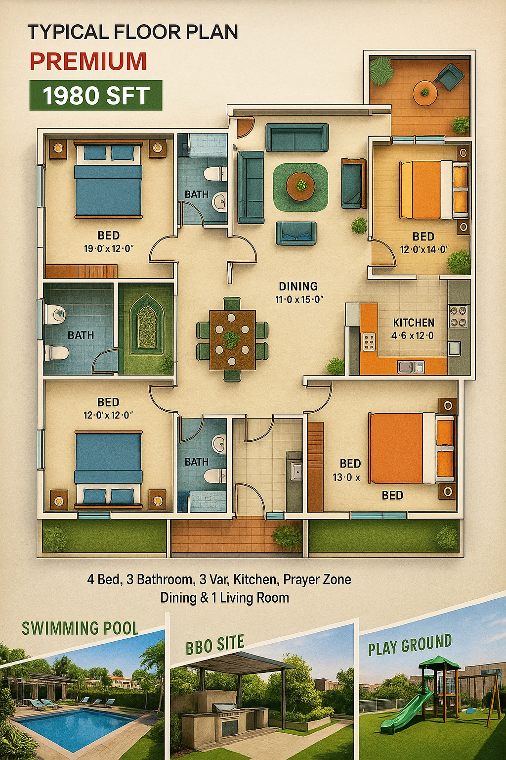 Pushpo Homes Ltd. presents a modern, luxurious condominium project on 33 katha of prime land in Aftabnagar, Dhaka, located at Block M, Road No. 7, Sector-1 (beside Baroi Tola). Each flat is approximately 1650 sq. ft. and includes: